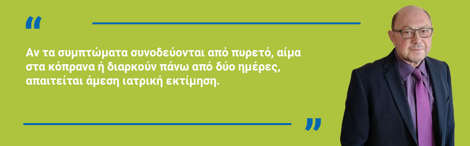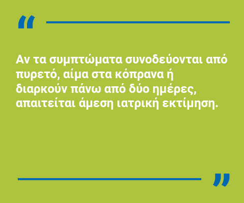 Σε περιπτώσεις επιμονής ή επιδείνωσης των συμπτωμάτων, συνιστάται η άμεση ιατρική αξιολόγηση, με στόχο την πρόληψη επιπλοκών και τη στοχευμένη θεραπευτική προσέγγιση.